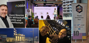 Event Nr. 1, welches in den Räumlichkeiten von SAP stattfand, feierte das 10-jährige Bestehen der InnerSource Commens, einer Initiative zur Verbreitung des InnerSource Ansatzes. Als hybrides Event startete es zunächst in Yokohama, gefolgt von Berlin und New York. Die Präsentationen in Berlin, u.a. von SAP, Mercedes-Benz sowie Ayden (s. Bild mitte) und DATEV zeigten, dass InnerSource weiterhin ein Erfolgsmodell ist, dass aber auch weiterhin viel Arbeit in der Umsetzung nötig ist. Event Nr. 2 stand insbesondere unter dem Aspekt der digitalen Souveränität. Die Open Source Business Alliance (OSBA) – Bundesverband für digitale Souveränität e.V. ist der Verband der Open Source Industrie in Deutschland. Sie vertritt über 240 Mitgliedsunternehmen, die jährlich mehr als 126 Milliarden EUR erwirtschaften. Gemeinsam mit wissenschaftlichen Einrichtungen und Anwenderorganisationen setzt sie sich dafür ein, die zentrale Bedeutung von Open Source Software und offenen Standards für einen erfolgreichen digitalen Wandel im öffentlichen Bewusstsein nachhaltig zu verankern. Die Teilnehmer waren sich einig, dass eine Staatsmodernisierung nur mit Open Source zu realisieren ist.